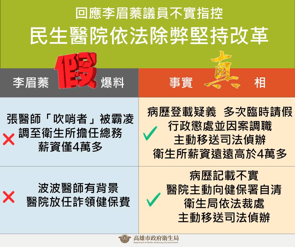 衛生局澄清說明「議員關心醫事人員調動及民生醫院醫療及服務品質相關議題」