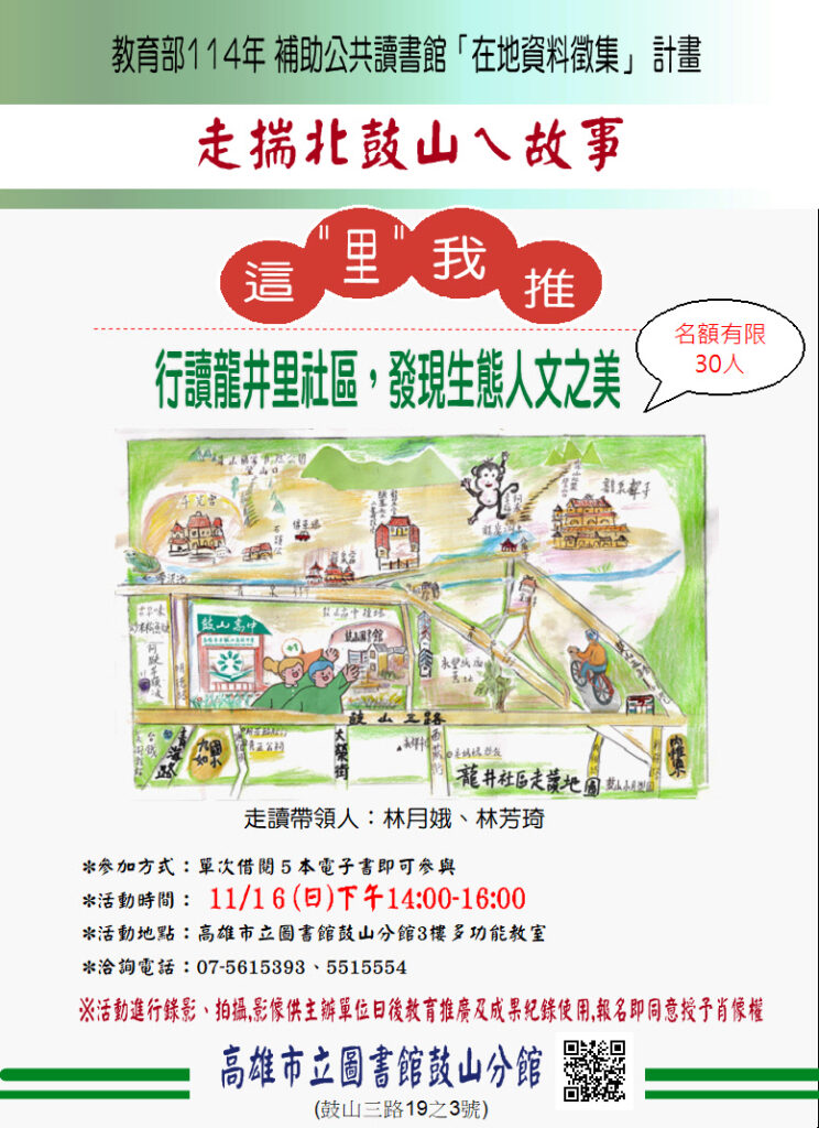 📍地點:高雄市立圖書館鼓山分館 3 樓多功能教室、龍井社區