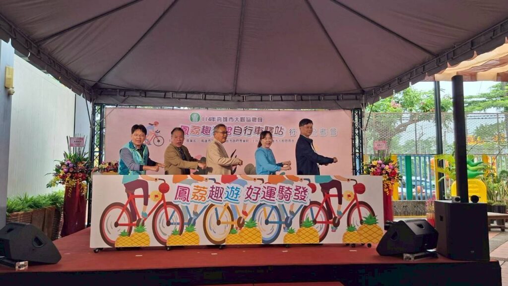 【高雄訊】高雄市大樹區農會(28)日在姑山倉庫產業文化休閒園區舉辦「114年高雄市大樹區農會鳳荔趣遊館自行車驛站行銷記者會」。大樹區農會理事長黃慶順、常務監事張清榮、總幹事歐幸娟、邱議瑩服務團隊、高雄市農會楊東杰總幹事、大樹區區長楊明融以及各農會代表、里長等貴賓均到場祝賀,共同為鳳荔趣遊館自行車驛站啟用揭開序幕,見證大樹區農會推動農業轉型與休閒觀光的豐碩成果,現場氣氛熱鬧溫馨。