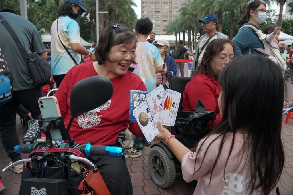 此外,現場也設有眾多身心障礙體驗攤位,如: 幻聽干擾、矇眼挑錢幣、讀唇語⋯等,體驗身障者的困難,理解友善環境的重要。社會局、衛生局、勞工局、教育局、交通局等局處也共襄盛舉,宣導友善身障的各項服務,現場熱鬧非凡、寓教於樂。共有近千人聚集參加身障日活動。