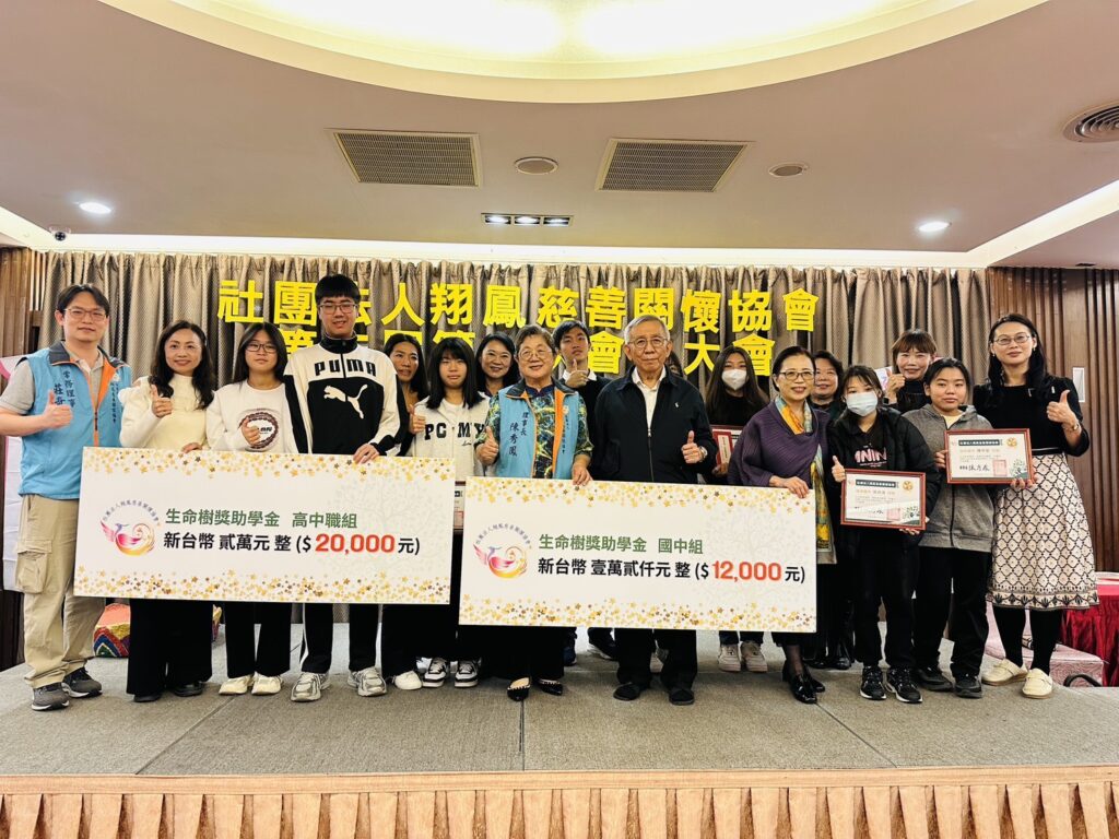 社團法人翔鳳慈善關懷協會於(1/11)日假寒軒飯店和平店芙蓉廳舉辦第二屆第一次會員大會暨「生命樹」清寒優秀學生獎助學金頒發典禮,並結合企業界、公益社團、善心人士加入「生命樹」助學金認養行列,以行動落實善循環創造新篇章。