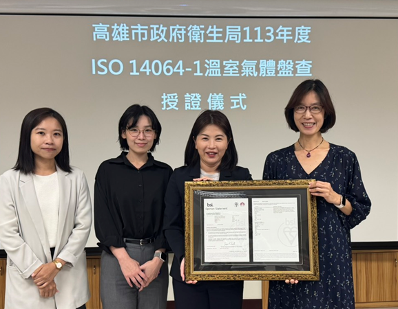 【高雄訊】為響應2050淨零排放目標,高雄市政府衛生局(13)日表示,已完成2024年度溫室氣體盤查,並成功取得國際公信機構BSI(英國標準協會)的外部查證聲明,是高雄市各公部門第3家成功取得國際認證機關。這份「碳健檢報告」不僅展現了衛生局透明管理碳排放的決心,更為高雄市公共衛生體系的綠色轉型立下重要里程碑。