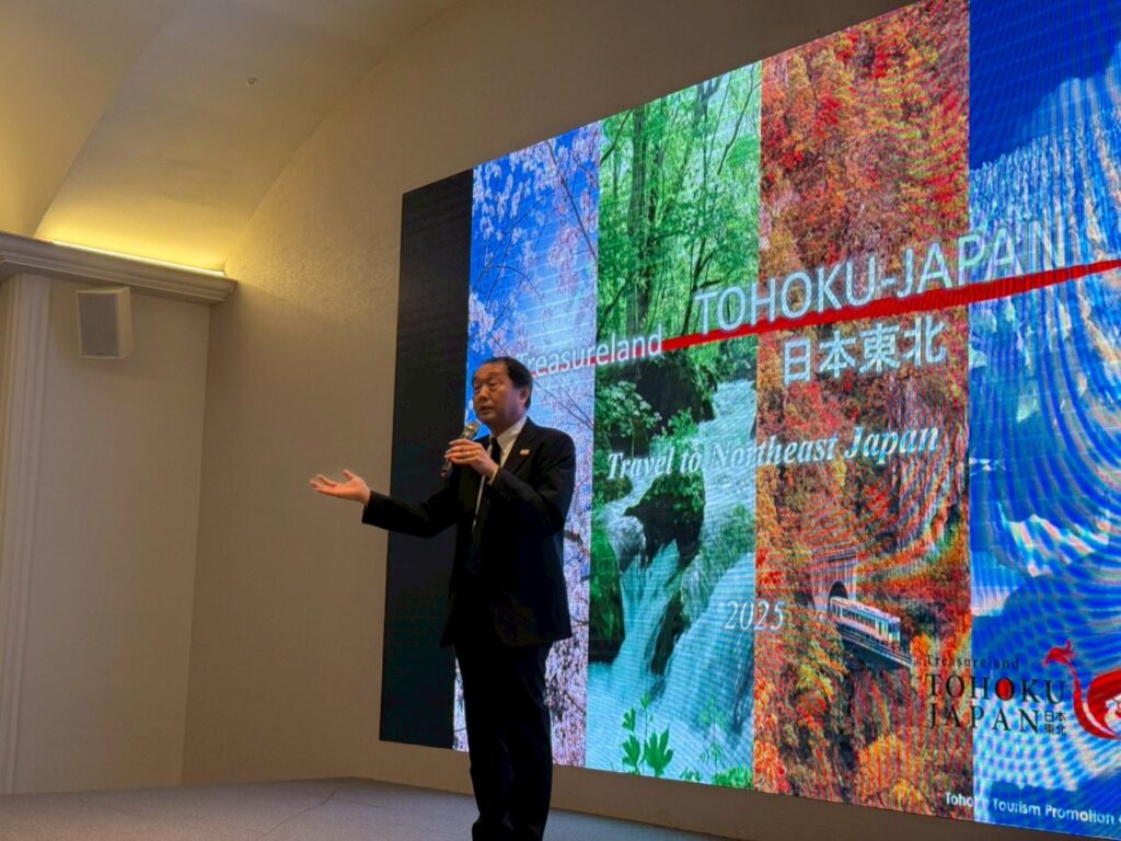 會中陳列18個商談攤位,由青森縣、岩手縣、秋田縣、宮城縣、山形縣、福島縣共同組成,內容涵蓋觀光體驗、農泊交流、地方歷史文化景點等豐富主題。其中「3.11傳承之路推進機構」的分享尤其令人印象深刻,介紹東北地區共342 處與地震災害相關之傳承設施,透過展示地震與海嘯特性、受災成因及實際案例,提醒世人記取教訓、提升防災意識,並協助學生瞭解疏散路線與防減災準備的重要性。