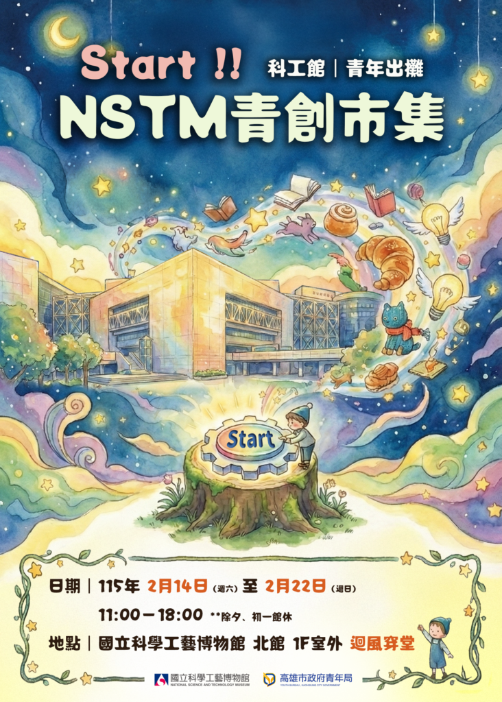 【高雄訊】青年出攤 × 創意啟動!科工館攜手高雄市政府青年局,特別規劃辦理「Start!NSTM青創市集」。合計有以下超夯的創意攤位設點喔!歡迎民眾駐足交流!