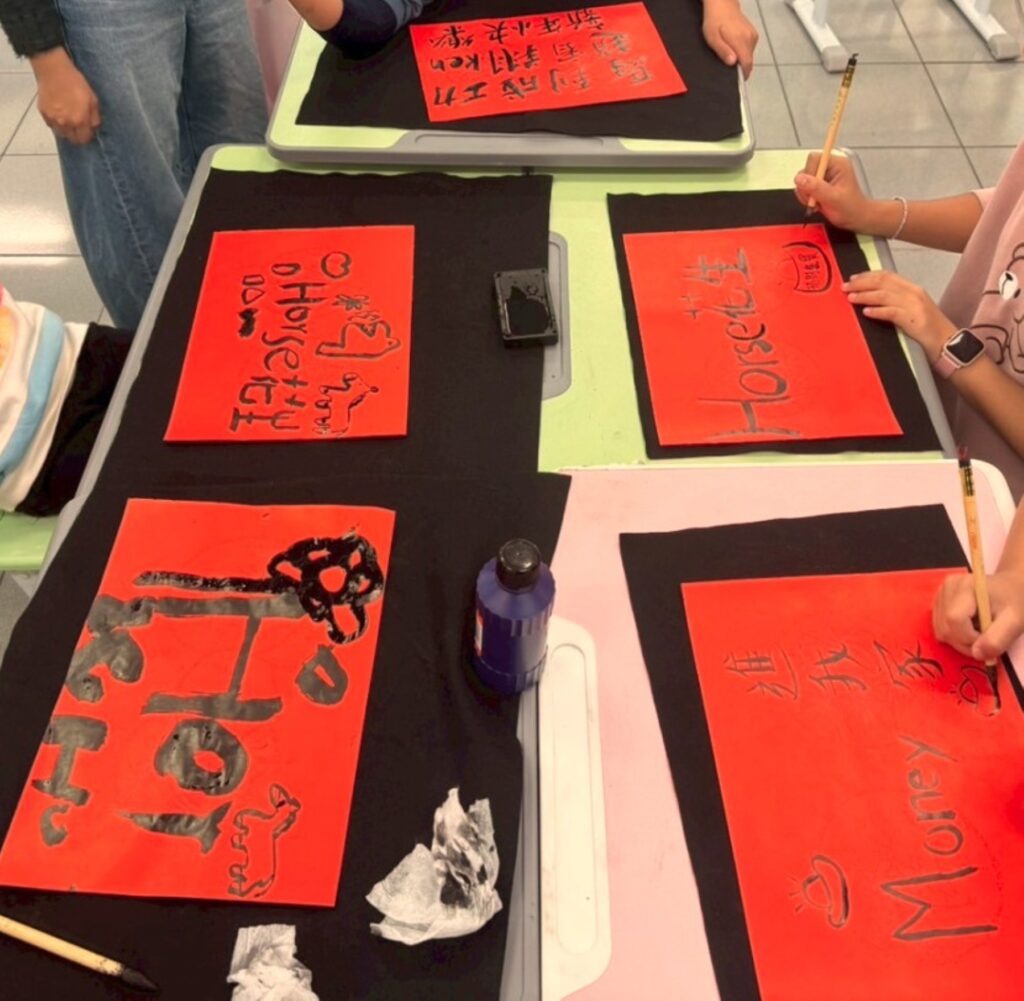 另有青年志工團隊結合春節年味在各地區進行專業服務,例如,高雄科技大學應用英語系學會展現跨文化結合的巧思,發起「迎春有英」行動。青年志工走進鳳山中崙社區,為弱勢家庭孩童提供英文課輔,並以傳統節慶結合語言專業,將其應英系的「英文書法」專業融入傳統習俗,帶領孩童創作「英文春聯」。透過藝術實作,孩子們在墨香中接觸外語,創作出獨一無二的新年祝福;此外,位於嘉義溪口鄉的「小島尋夢」團隊則關注農村高齡化議題,發起「藝起嘉美林」前導行動。青年志工們結合特教、心理與藝術專業,運用在地稻稈與長者及學童共創斗方春聯,透過「代間共學」不僅緩解了偏鄉獨居長者的孤單,更引導孩子在整理校園的過程中,透過粉彩創作覺察情緒,讓農曆年的「團圓」概念昇華為跨世代的心靈連結。
