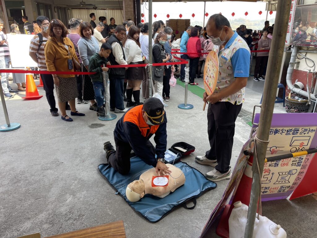 本次宣導內容涵蓋用火與用電安全、住宅用火災警報器的重要性,以及心肺復甦術(CPR)與心肌梗塞急救等主題。現場並安排 CPR 與自動體外心臟去顫器(AED)實作教學,讓民眾透過實際操作提升緊急救護技能,強化面對突發狀況的應變能力。