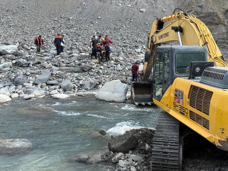 消防人員抵達現場後發現,事故地點坡度陡峭,谷底溪水湍急,無法以徒步方式接近,救援行動一度受阻。為爭取黃金救援時間,現場指揮官洪松銘緊急協調附近施工單位支援怪手,由消防人員在安全戒護下利用怪手挖掘斗、機械臂橫越湍急溪流,順利抵達傷者位置。