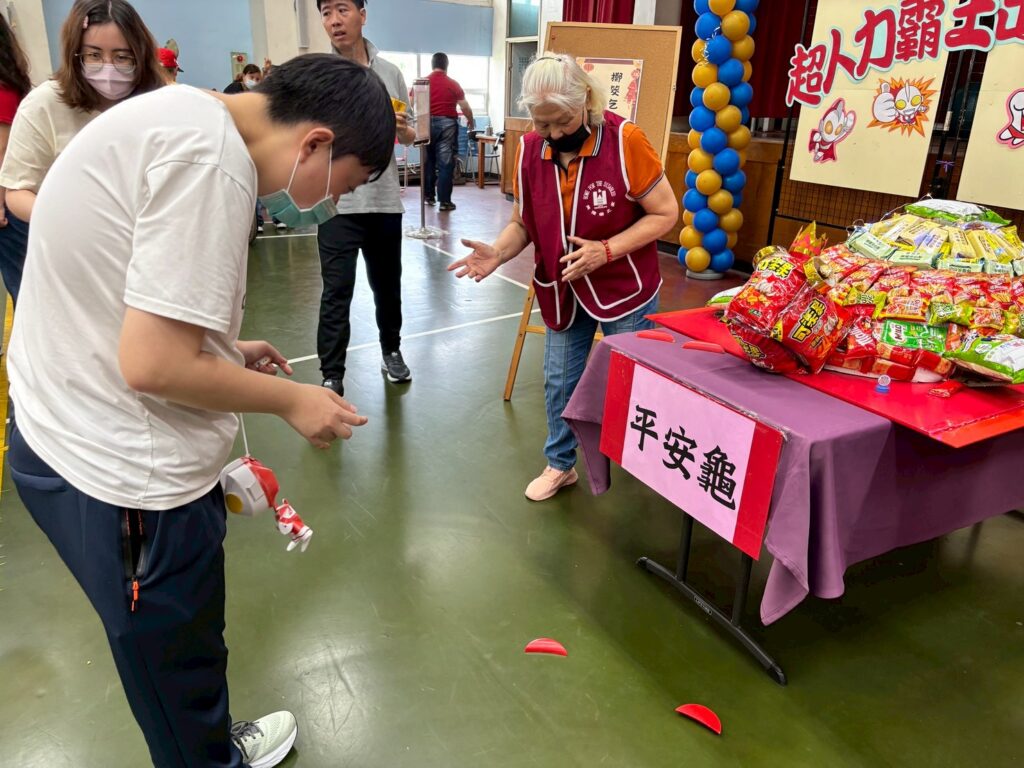 乞龜為臺灣元宵節重要民俗文化,象徵向神明祈求平安、健康與福氣,並將祝福延續至新的一年。本次乞龜活動的大龜是由無障礙之家2位教保老師帶領3位身障者齊力打造,用大家平時愛吃的餅乾、零食及沖泡飲品等層層堆疊,再搭配燈飾妝點,細心拼貼裝飾,歷時多日終於完成,展現團隊豐富創意與共融精神。當葉欣雅副局長與貴賓一同為乞龜點燈,並在龜上題寫新年賀詞時,大家都感受到溫馨的節慶氛圍。現場還設有闖關活動,有猜燈謎、套圈圈、釣魚遊戲等。