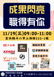 斗六就業中心11/19徵才暨職訓成果展 現場手作體驗及求職好禮獎不完